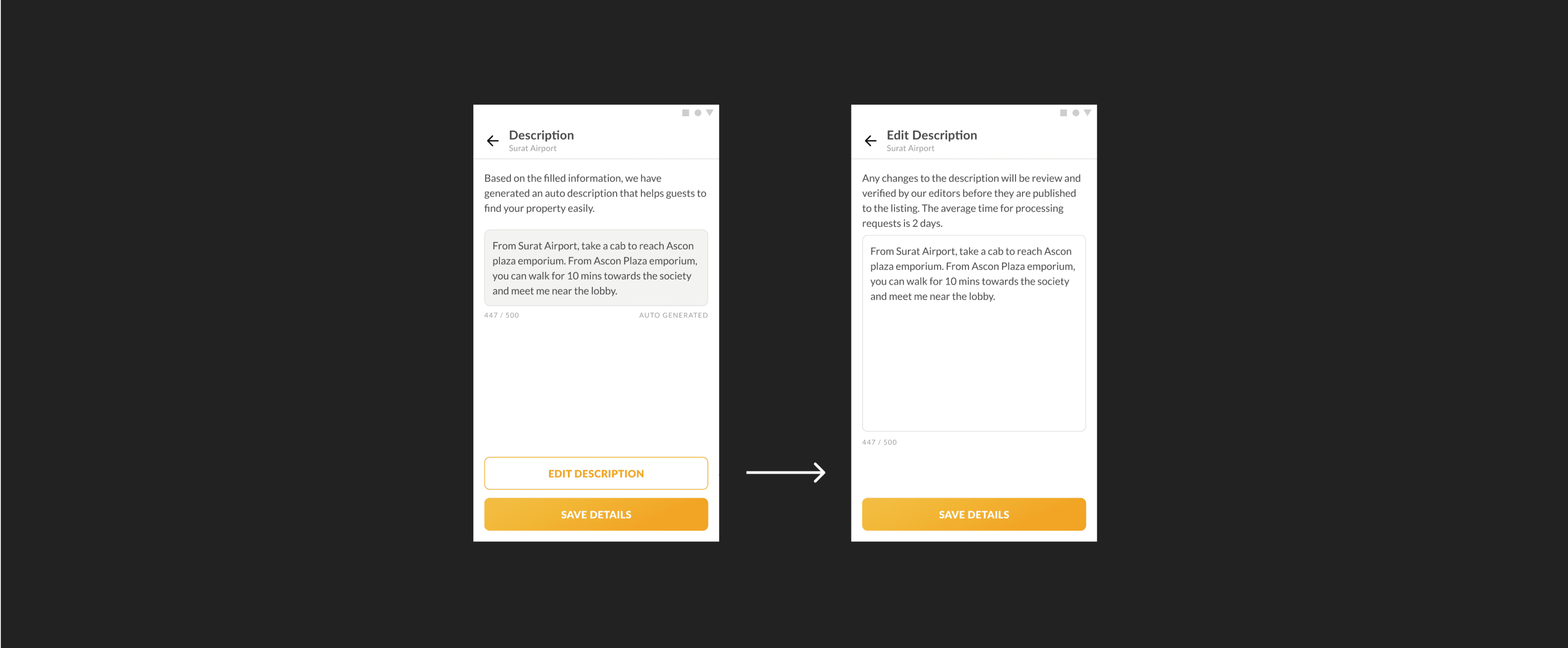 Addressing edge cases: This flow has some unique edge cases. Many homestays are in remote locations due to which the location might not be available directly on the search engine and one has to place the pointer manually on the map. Moreover, there are sought-after destinations that cannot be categorized into stations or bus stops. Addressing such unique edge cases lessens the confusion and makes the hosts feel more confident about the information they are entering.