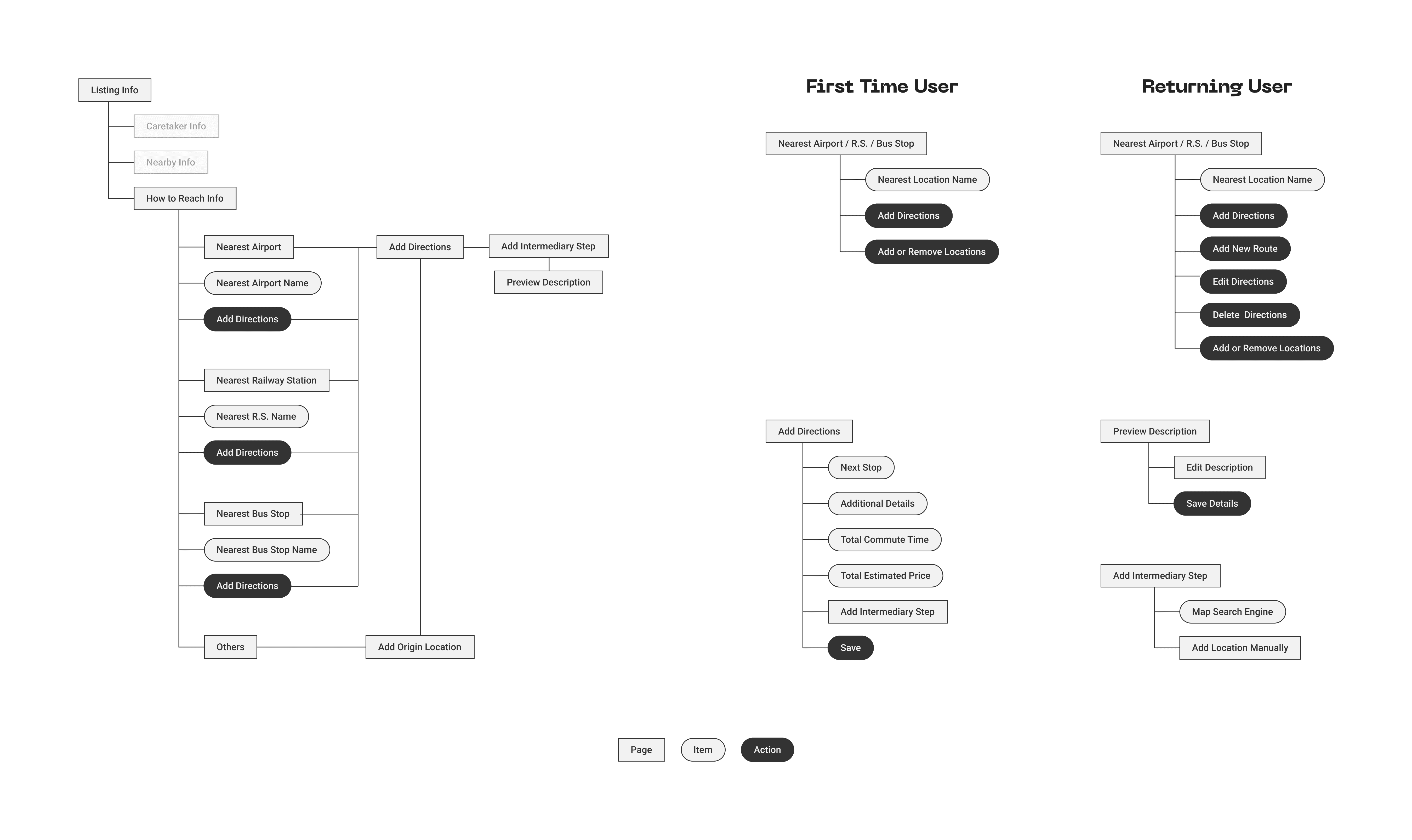 The information architecture was designed in a manner keeping in mind both - the first-time users and the returning users to this flow. Users enter this flow much later after onboarding their property. This was also taken into consideration while building the IA.